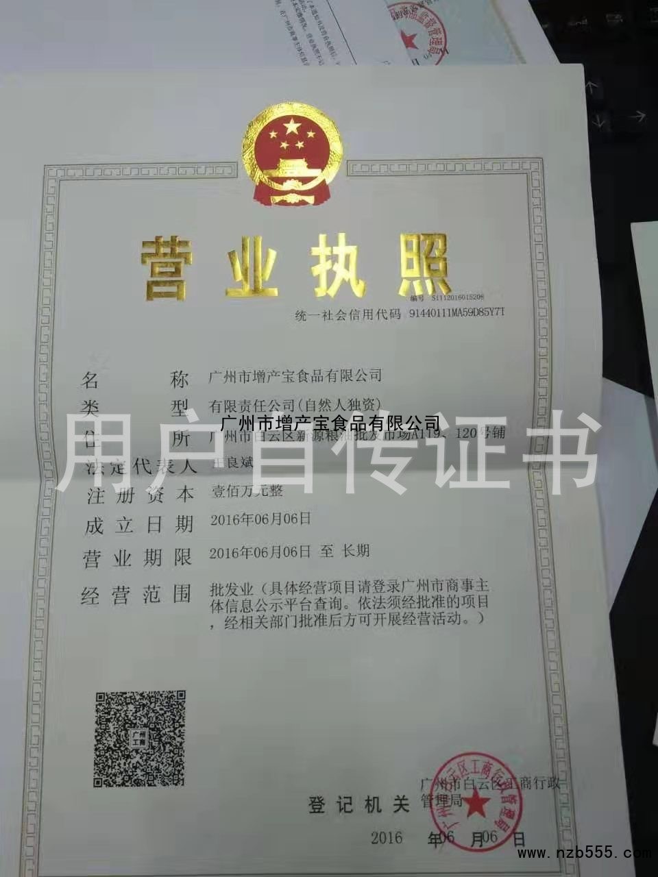 | 發(fā)證機(jī)構(gòu): | 廣州市白云區(qū)工商行政管理局 | 發(fā)證時(shí)間 : | 2016-06-06 |