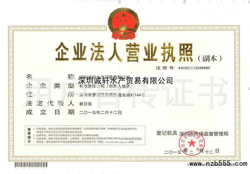 榮譽(yù)資質(zhì) 深圳誠軒水產(chǎn)貿(mào)易有限公司
