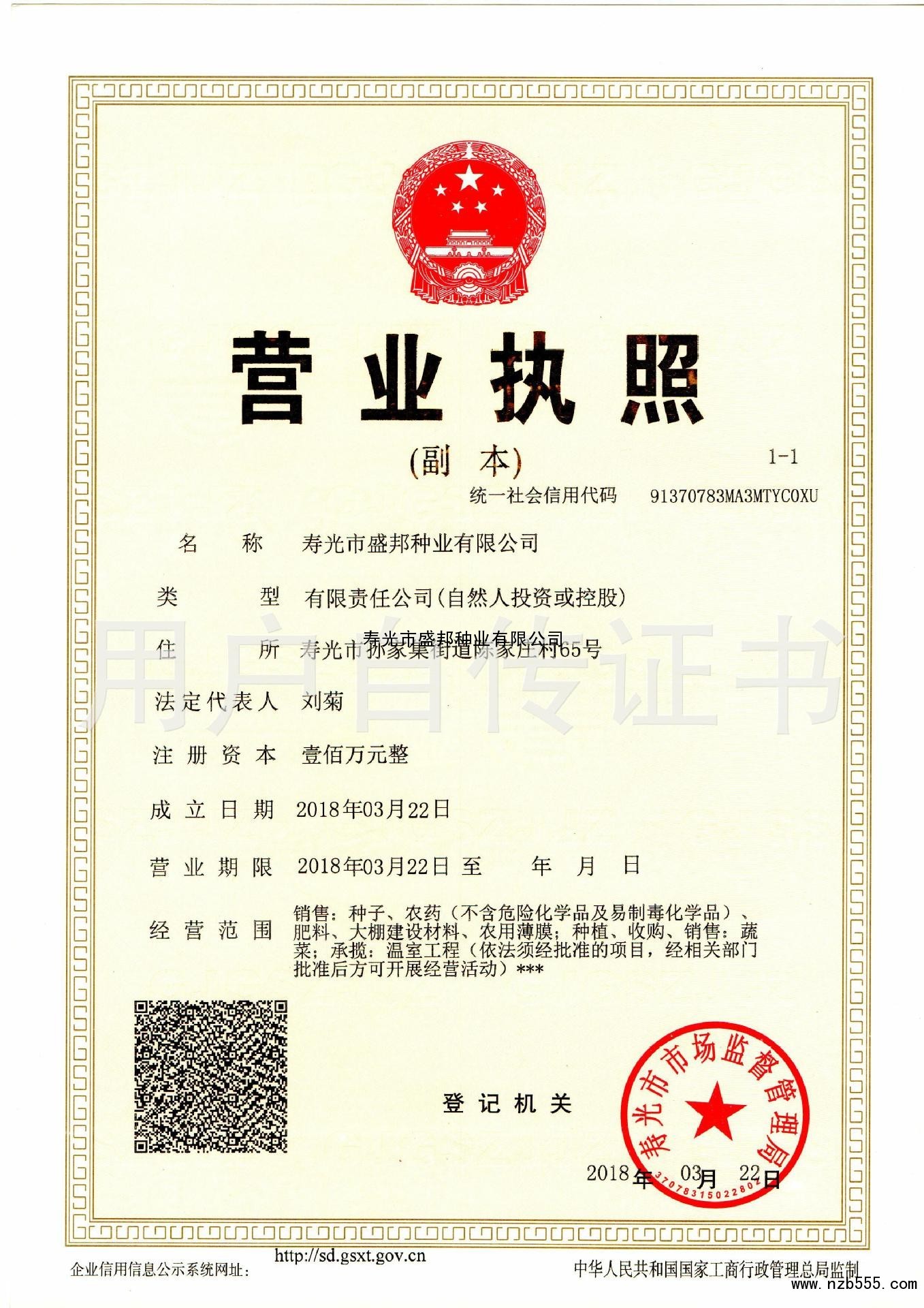 | 發(fā)證機(jī)構(gòu): | 壽光市市場監(jiān)督管理局 | 發(fā)證時(shí)間 : | 2018-03-22 |