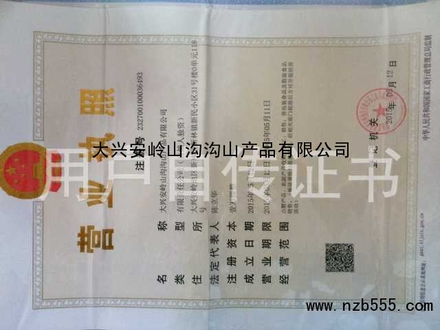 | 發(fā)證機(jī)構(gòu): | 黑龍江省大興安嶺地區(qū)工商行政管理局 | 發(fā)證時(shí)間 : | 2015-03-12 |