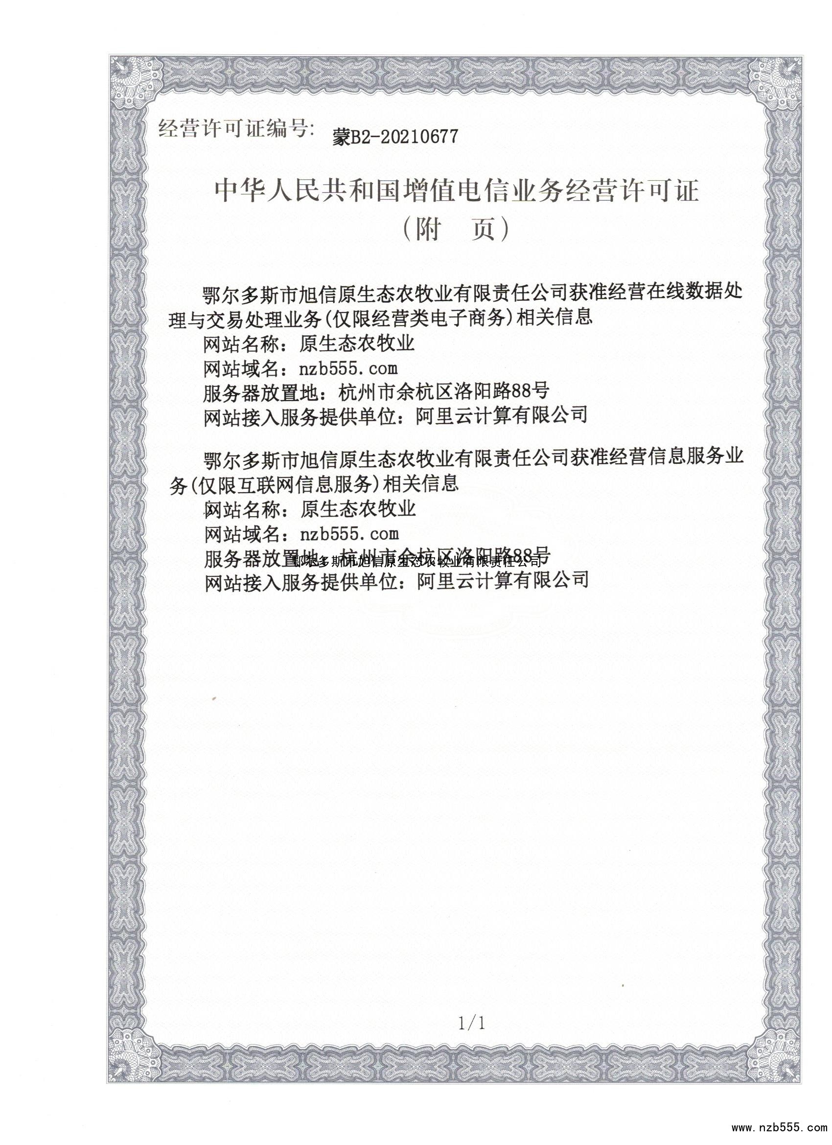 中華人民共和國增值電信業務經營許可證(附頁)