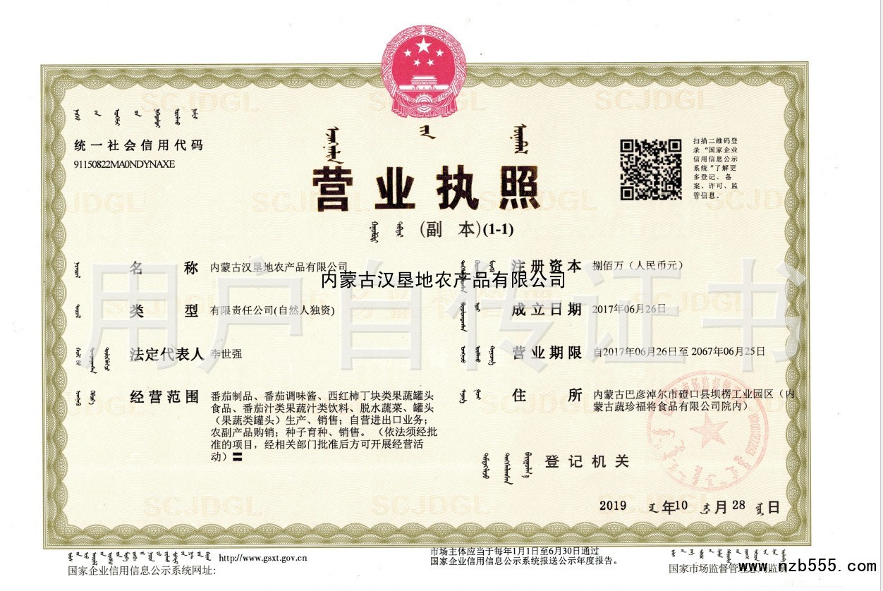 內蒙古漢墾地農產品有限公司