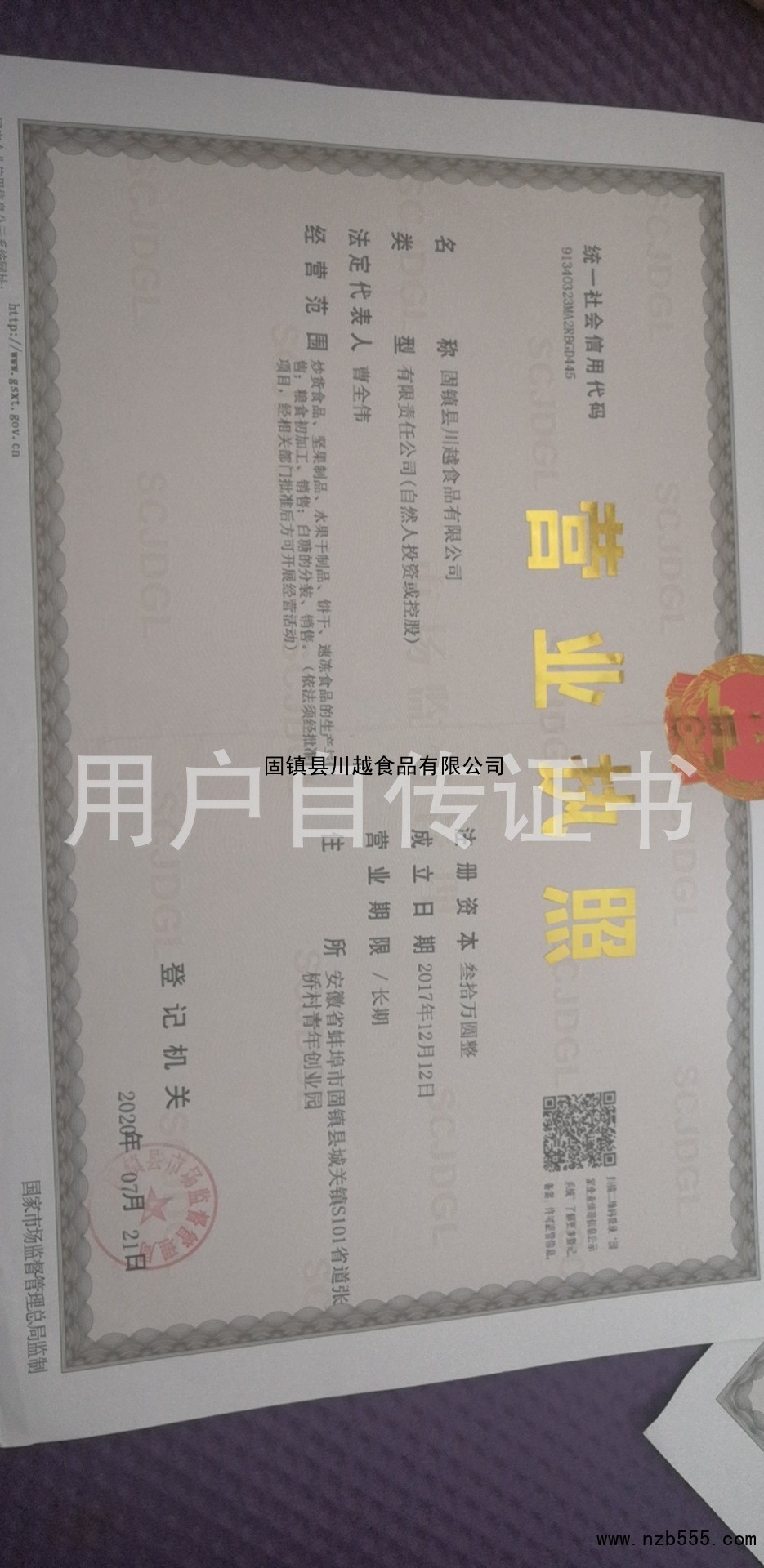 | 發(fā)證機(jī)構(gòu): | 固鎮(zhèn)縣市場(chǎng)監(jiān)督管理局 | 發(fā)證時(shí)間 : | 2020-07-21 |