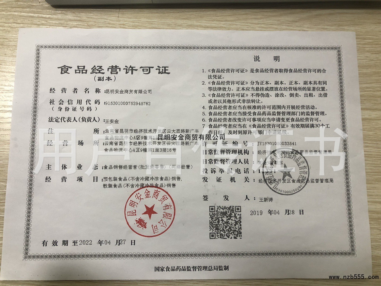 榮譽(yù)資質(zhì) 昆明安金商貿(mào)有限公司