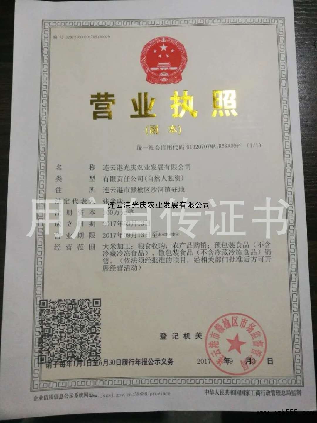 榮譽(yù)資質(zhì) 連云港光慶農(nóng)業(yè)發(fā)展有限公司