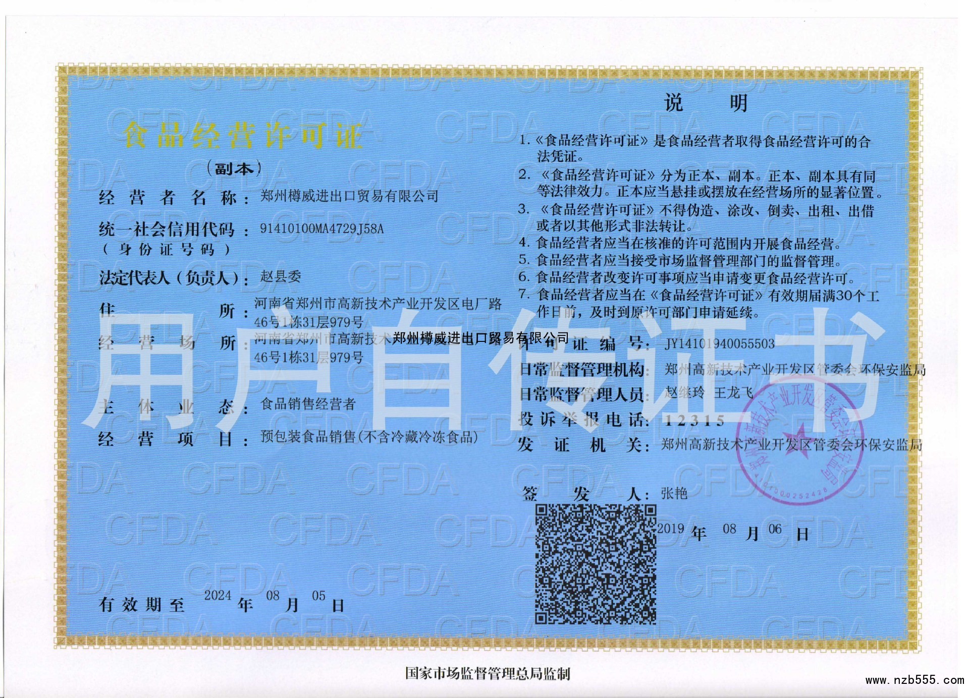 榮譽(yù)資質(zhì) 鄭州樽威進(jìn)出口貿(mào)易有限公司