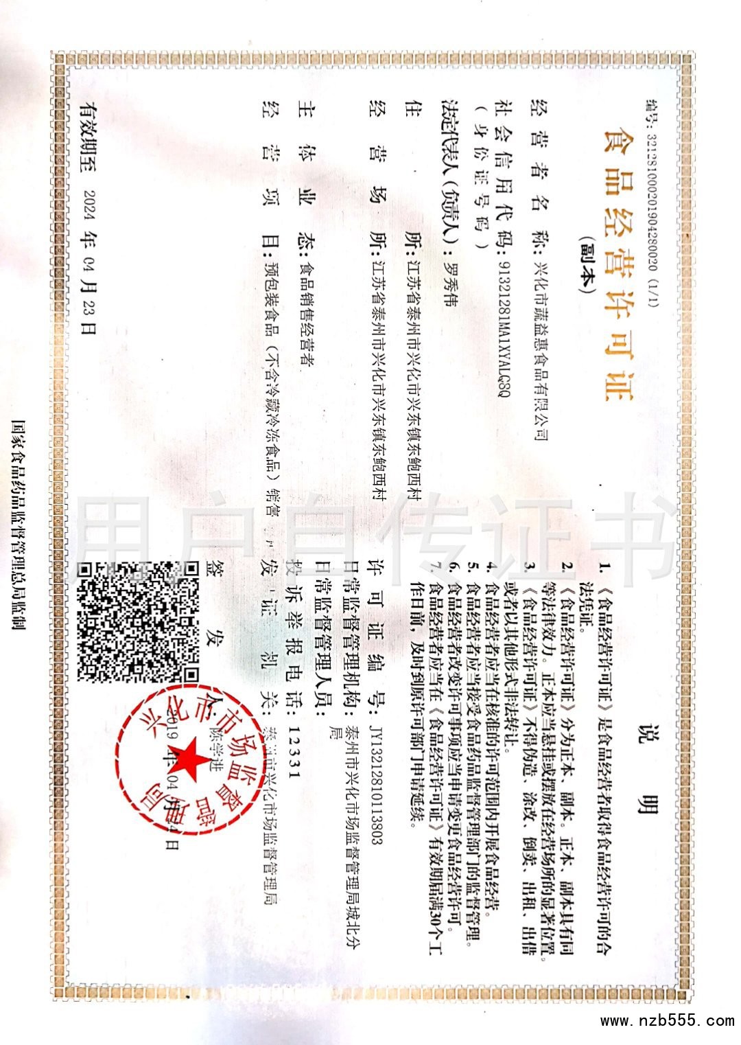 食品經(jīng)營許可證