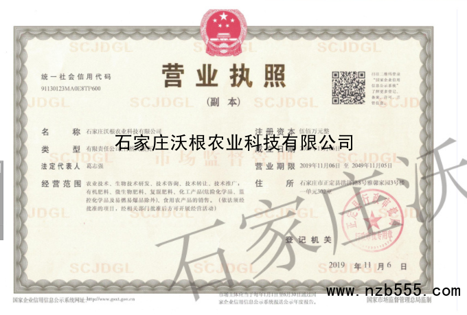 首頁 > 榮譽(yù)資質(zhì) > 石家莊沃根農(nóng)業(yè)科技有限公司