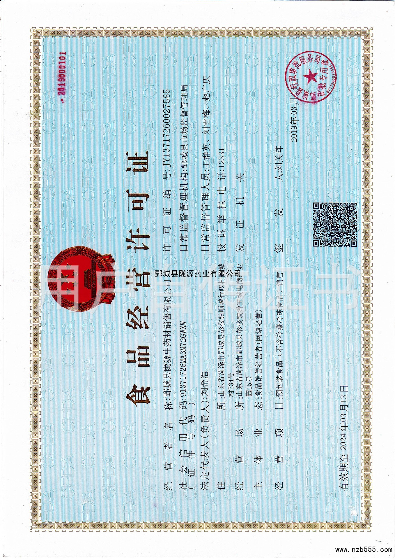 食品流通許可證(除乳制品、嬰幼兒配方乳粉、酒之外的流通許可證)