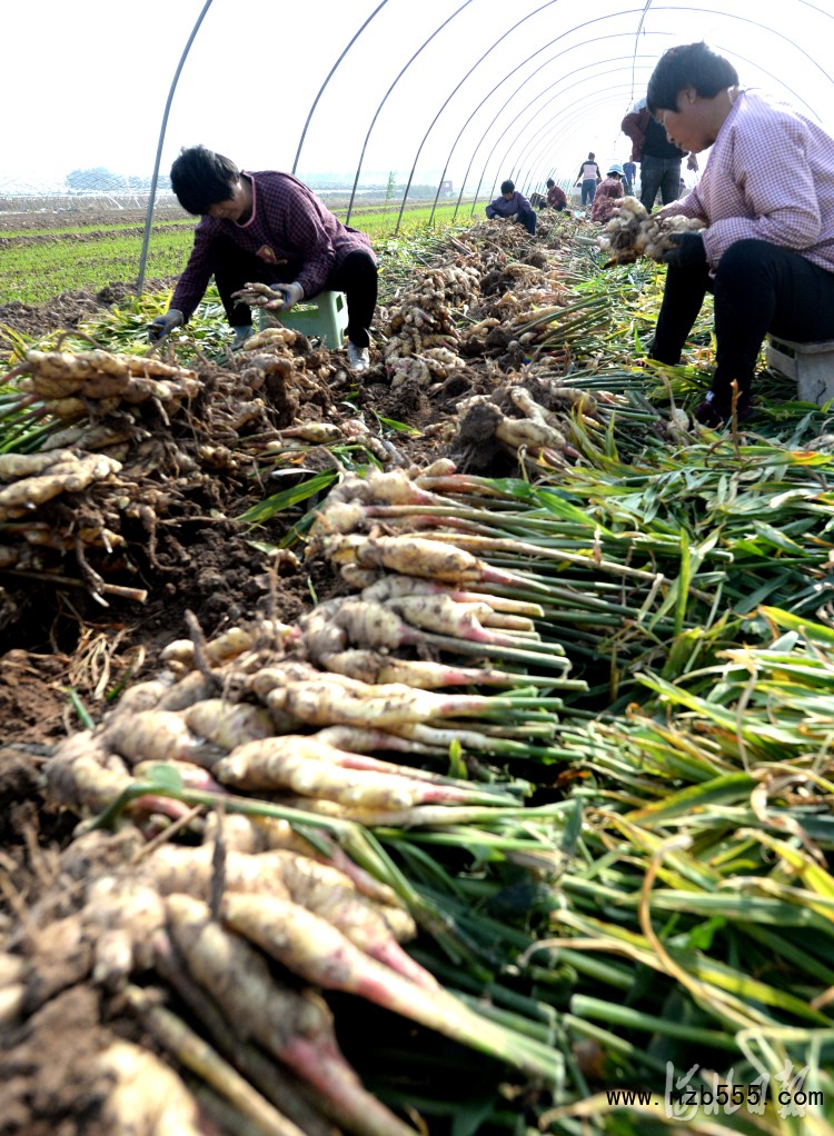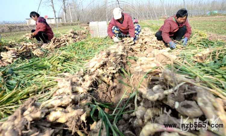 2021年11月4日,河北省磁縣講武城鎮(zhèn)北白道村生姜種植基地內(nèi),種植戶在采收生姜。河北省磁縣通過“公司+基地+合作社+農(nóng)戶”模式,因地制宜發(fā)展生姜、山藥、蔬菜等特色種植,促進(jìn)農(nóng)業(yè)增效和農(nóng)民增收,助力鄉(xiāng)村振興。河北日報記者杜柏樺攝