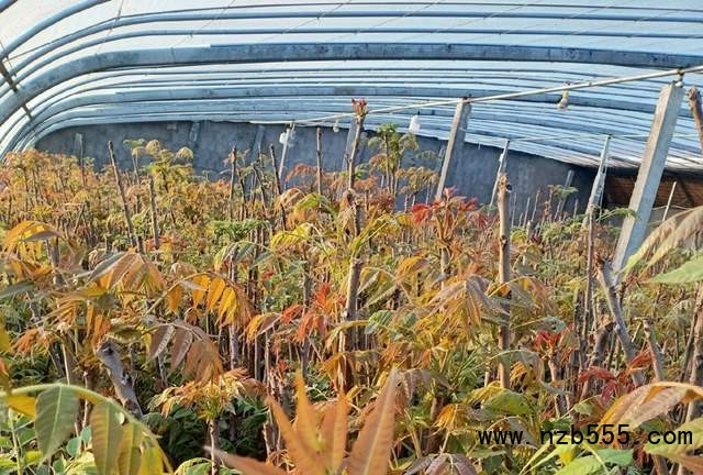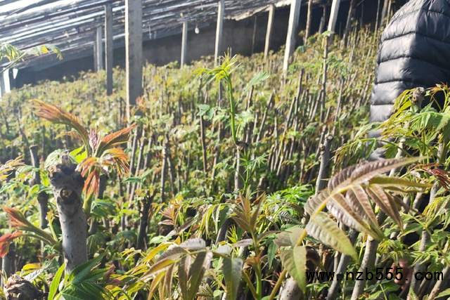 至于大棚香椿具體的種植方法,據他說,和露天種植相比,密度要大一些,每畝可種小幾萬畝的香椿苗,還要做好棚內的溫度控制,其他的管理基本上都差不多,一畝地大棚香椿苗,收獲6000-7000斤左右的香椿芽還是可以的,產量高的情況下,能接近上萬斤。