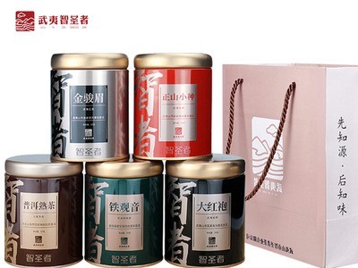 正山小種50g,大紅袍50g,金駿眉50g,鐵觀音50g,普洱熟茶50g,5種茶葉組合裝250g+手提袋