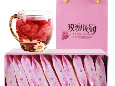 云南墨紅玫瑰花冠茶獨立包裝一朵一杯10朵禮盒裝廠家批發墨紅玫瑰