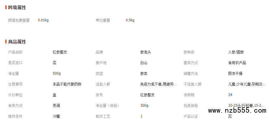 東北長(zhǎng)白山干紅參整支根人參可切片高麗參大整支500g