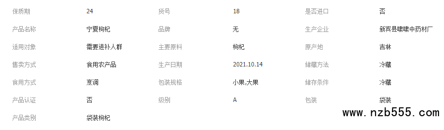 寧夏枸杞250g袋裝 中