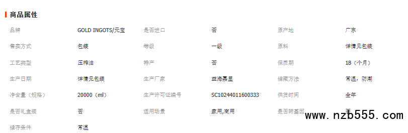 元寶調和油10L*2桶餐飲用 元寶牌食用油