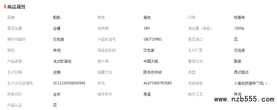 盼盼法式小面包1500g