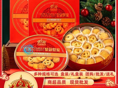 皇冠世家曲奇餅干紅鐵罐包裝黃油休閑小零食品新春年貨送人禮批發